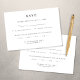 Förbättra dina bröllopsinbjudningar med den här elegantens svarta OSA kort, med minimalistisk typografi på en skarp vit bakgrund. Designat med sofistikering i åtanke erbjuder denna moderna OSA kort ett smidigt sätt för gästerna att svara med lätthet. Snyggtens svarta skript på en klassisk vit bakgrund lägger till en aning tidlös elegans, skapar det perfekten som komplement till din bröllop-svit. Det här OSA kort är perfekt för par, bröllopsfixararna och blivande brider, och innehåller utrymme för val av måltider, vilket förenklar gästsvaren. Anpassa texten så att du får en sömlös och personligens svarstid. Beställ nu för att slutföra inbjudan och utforska vår samordnande bröllopsinbjudan. ©VividDhikr