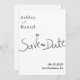 Den här eleganten svart och vitt bröllop spara datum är perfekt för ett modernt bröllop. Den enkla designen har elegant svart kalligrafi på vit bakgrund.