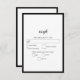 En minsta svartvit elegant bröllop-design. En enkel design som användor en klassisk elegant- och kalligrafi. En lysande svart- och vit monogramdesign med modern klasstypografi. En svartvit bröllop OSA-svarskort med elegant med modern inslag. Det finns också möjlighet att matcha bröllopsinbjudningar och andra artiklar i kontorsartiklar.