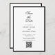 Elegant Minimalistisk svartvit monogram Bröllop Spara Datumet