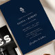Blåbröllopsinbjudan med foto på baksidan, som ger en jämvikt mellan modern elegans och tidlös sofistikering, perfekt för formellt bröllop, kvällsceremonier eller storskaliga svarta tidsevenemang. Framsidan har en rik marin bakgrund med skarp vit text i ett förfinat serif- och flytande skriptteckensnitt, accentuerad av en känslig botanisk illustration som lägger till ett subtilt, naturinspirerat inslag. Den här inbjudan är perfekt för vinterbröllop, lyxplatser eller klassiska balrumsmottagningar där en fet, elegant färg palett anger tonen. På baksidan finns ett foto av anpassningsbarna fullt-storlek som gör att par kan ha en omhuldad förlovning porträtt eller ett romantiskt ögonblick för en mycket personlig beröring. Med välorganiserad, fullt redigerbar text är denna tvåsidiga bröllopsinbjudan både vacker och lätt att anpassa. Kombinationen marin och vit skapar ett polerat och professionell estetiskt system som fungerar bra tillsammans med silver, guld eller bröllop färg, vilket skapar denna inbjudan till ett mångsidigt och minnesvärt val. Finns som tryckta kort eller en snabb digital nedladdning.