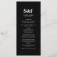 Tittar för en modern snyggt för din bröllopsdag? Titta bara på vår vackra bröllop-meny! Med ett fet vitt monogram och ett klassiskt tecken i svart bakgrund är den här menyn perfekt för formellt bröllop. Dessutom kan du anpassa färgen på text och bakgrund så att de passar perfekt med ditt tema. Gör din bröllopsdag ännu speciellare med vår elegant bröllop-meny. Beställ nu och lägg till en klasslig röra till din stora dag!