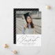 Ett enkelt tillkännagivande från studenten som visar studenten överst med "Student" som visas i ett svart, modernt kalligrafiskript nedan på vit bakgrund. Anpassa bilden till studenten genom att lägga till studenten, student namn och namn. Kortet återgår till visning ett svart och vitt diagonalt rand mönster. 2025 års tillkännagivande i studenten är perfekt för både högskoleutbildning och högskoleskola student.