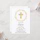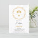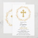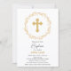 © Socialite Design & LICENCORS. Vackra baptisminbjudan med guld kor och guld blommigt ram. En underbar inbjudan till familjen och vänner i inbjudan att delta i evenemanget och samlas efteråt.