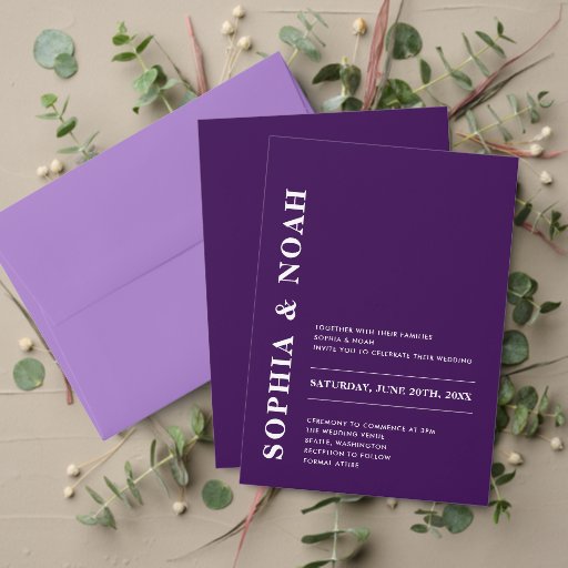 Modern Minimal Purple Lavender White WeddingDesignad av Uneza K