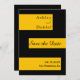 Den här eleganten svart och guld bröllop spara datum är perfekt för ett modernt bröllop. Den enkla utformningen har elegant svart kalligrafi på guld rand mot svart bakgrund.
