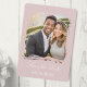 Meddela din speciella dag med ett meddelande utan tidslinje med hjälp av den här mjuka rosan Spara datumfotokortet. Med en delikat bakgrund och plats för ditt favoritfoto blandar den här designen modern minimalism med romantisk elegans.