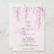 Denna eleganta bröllopsinbjudan har en romantisk och eterisk design med vattenfärg wisteria som rinner nedåt och ömtåliga vilda blommor i mjuka lavendel- och rosa nyanser. Mot en subtil, texturerad lavendelfärgad bakgrund skapar det vertikala blomsterarrangemanget en graciös ram runt den rena, klassiska typografin.
