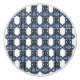 En elegant anpassningsbar mönster av blåa abstrakt-scaraber, sammanlänkade med en rad linjära rastreringsmedel.