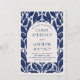 Elegant blomsterformgiven oljemålad mönsterbröllopsinbjudan med båge i marinblå färger.