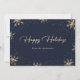 Eleganta moderna blå och guld julkort med snöflingor och snö på en mörkblå bakgrund. En vacker handritad titel med en guld folieeffekt i mitten. Personalisera enkelt dessa blå och guld snöflinga julkort med ditt familjenamn och meddelande. Anpassade förfrågningar är välkomna.