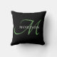Elegant Modern Black Grönt Script Monogram Kudde