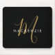 Elegant Modern svart Guld-skriptmonogrammofon med mus. Ett skript med elegant guld monogram i kombination med ett rent, vitt smekif-teckensnitt gör att contemporaryn ser ut.
