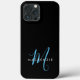Elegant Modern Black Himlar Blue Script Monogram Phone Case. Ett himlar-blått skript i elegant monogram i kombination med ett rent, vitt smekif-teckensnitt ger ett utseende för contemporaryn.