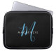 Elegant Modern Black Himlar Blue Script Monogram Laptop Fodral