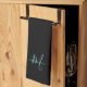 Elegant Modern Black Teal Script Monogram Kökshandduk