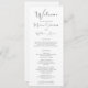 Elegant Modern Black & White Bröllopsprogram. Elegantens minimalistiska utformning med en modern skevning som innehåller klassisk skrynklig, svart skripttext på elfenbensvit. Designad av Austen & Grace. Anpassa med information om bröllopsprogrammet, brud och groom namn, tack, ceremonidetaljer, datum för bröllop, plats och bröllopsfest, etc. Du kan anpassa all text, typsnitt, placering och färg fram och tillbaka. Vi inbjudan besöker vår Zazzle-butik för att visa matchande produkter med mera. Kontakta oss om du behöver hjälp.