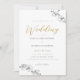Grenar av vita orkidéer, handdragna i grafitpenna, intertwin i denna enkla men sofistikerade, elegant ännu chic bröllopsinbjudan. Guld i färg i det skrivande ge är en festlig men dämpad stänk i färg.