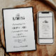 Modern svartvitt visitkort för bröllopsinbjudan med fotobakgrund kombinerar klassiskt elegans med stil, med en tidlös monokrom framdesign och ett fullt-storlekt anpassningsbar-foto på motsatt sida. Framsidan visar minimalistisk typografi med en förfinad blandning av serif och script typsnitt, medan baksidan omvandlar inbjudan till en keepsaké med utrymme för en favoritförlovning eller ett par porträtt. Den här fotobröllopsinbjudningen passar perfekt för svarttids bröllop, stadstävlingar eller contemporary firande, och blandar tradition och personlighet i en sofistikerad layout. skapar perfekten för par att både söka formalitet och personlig beröring. Finns som tryckta kort eller en snabb digital nedladdning.