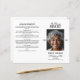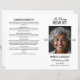 Ett prisvärt firande av livets dubbla program med en ren svartvit layout som erbjuder ett värdigt och budgetvänligt alternativ för minnestjänster. Den här begravningsprogramdesignen innehåller ett stort framfoto med fullt redigerbar elegant-serif och skripttypografi på en minimalistisk vit bakgrund. Inuti är layouten genomtänkt uppdelad så att den innehåller en föreslagen ordning för service och en styckedel, och baksidan har utrymme för bekräftelser eller annan text, vilket ger allt väsentligt innehåll i ett enda vikt kort. Perfekt för familjer som söker budgetbegravningslösningar utan att kompromissa med stil eller med personalisering, ger denna enkla och smakfulla design en respektfull hyllning som presenteras både ekonomiskt och vackert.