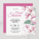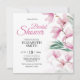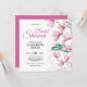 Invititation av den estetiska möhippan party firande. Rosa och grönt, magnolia blommor och magnoliesprit i vattenfärgen stil. Pastellkompaketet med rosa örter dekorera. Fyrkantig rosa möhippa-partiinbjudan.