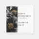 Dessa eleganta svart-vita blommiga lyckönskningar för pensionering i pappersservetter kan anpassas med din information i modern typsnitt. Designad av Thisisnotme©