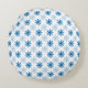 Bring a touch of elegance and serenity to your space with this striking round pillow. Featuring a repeating pattern of stylized blue flowers, the design creates a bold yet calming contrast perfect for modern or classic décor. The symmetrical floral motif adds a sense of harmony, making this pillow an eye‑catching accent for your living room, bedroom, or reading nook. Cozy and visually captivating, it’s a beautiful way to infuse your home with timeless charm and artistic flair.