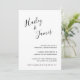 Enkelt svartvitt Förhör med namn i ett handskript i eleganten längst upp till lämnat och din händelseinformation i högernas justering på högerna grund. Den chic handskriften ger en romantisk beröring till denna minimalistiska utformning.