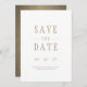 Elegant Modern Bröllop White Spara datumet. Elegantens moderna typografi. Antikettext för färgad i guld på vitt med baksidan med ett originalfärgat, blandat medieantikt guld modern abstrakt-grafik. Anpassa med din egen text. Ett vackert sätt att spara datumutformningen utmärkt för bröllop, förlovningar, årsdagar och andra specialtillfällen. Besök vår butik, Austen & Grace, om du vill visa bröllop-svit, matcha produkter med mera och kontakta oss om du behöver hjälp contact@austenandgrace.com