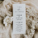 Elegant Modern Bröllopsprogram Card är perfektens val för par som vill behålla sak enkel men ändå snyggt. Det här programkortet har en ren, modern utformning som är både elegant och sofistikerad. Det minimalistiska synsättet på utformningen garanterar att alla viktiga detaljer lyfts fram, samtidigt som man behåller en underskattad skönhet. Matchande objekt i vår butiks Cava party-design