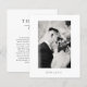 Uttryck din hjärtliga tacksamhet med detta eleganta minimalistiska bröllopskort. Med en ren svart-vit design och modernt typsnitt är detta kort perfekt för par som älskar tidlös och sofistikerad brevpapper. Den enkla men raffinerade layouten låter ditt meddelande lysa igenom, vilket gör det idealiskt för att tacka gästerna för deras kärlek, stöd och genomtänkta gåvor. Oavsett om din bröllopsstil är klassisk, modern eller minimalistisk, kompletterar detta tackkort vackert vilket tema som helst.