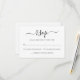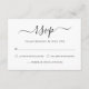Den här OSA kort har en minimalistisk utformning med svartvit färg och en aning modernt fläkt från kalligrafiskriptet. Den enkla layouten gör det möjligt för gästerna att tydligt se svarsinformationen och tidsfristen, medan den sofistikerade kalligrafin tillför en aning personlighet. Denna OSA kort är perfekten som komplement till alla moderna bröllopsinbjudningar.