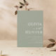Den här inbjudan från elegant bröllop innehåller modern kalligrafi och klassisk fet teckensnitt. Med trendigets bakgrund för grönt är det chic och färsk. Parets namn är djärv, skapar det minsta bröllopsinbjudan.