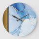 Elegant Modern Chic Blue Guld Marble Mönster Stor Klocka