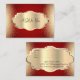 Elegant guld ram på röd bakgrund med konetti. Perfekt presentkort för skönhetssalonger, spa, kosmetologer, estetiker, dansstudios, butiques, designers, hårstrum och mode-stilister eller andra medvetna professioneller eller detaljhandelsprodukter.