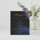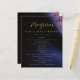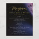 Några grenar av eucalyptusblad, handritade med färgpenna och skiktade med nyanser av dammig och mörk lila, gör ett modernt, sofistikerat, elegant men chic bröllopsprogram. Den svarta och mörkblå bakgrunden med antydningar av lila och ljus lyser upp midnattshimlen.