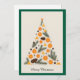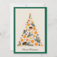 Med det här moderna julkortet får du lite helgdag för ditt liv. Kortet har en stiliserad Julgran som dekoreras med orangar och gräs-koner och skapar en originalsammansättning som perfekt blandar tradition med modern design. Den beige bakgrunden och mörk grönt ram understryker eleganten, det minimalistiska stil, skapar detta kort som är idealiskt för älskare av subtila helgdag. Denna enkla men opraktiska utformning är ett underbart val för att skicka ett unikt personlig "God jul"-hälsning utan att behöva använda foton. Julkortet är perfekt anpassat till contemporaryns utveckling - det är både elegant och klassiskt. Det framstår som ett modernt kort med unik utformning och naturliga accenter, som ett okonventionellt dekorerat Julgran. Perfekt till helgdagarna för dem som söker något speciellt men enkelt. Kortet fungerar både som en helgdag dekoration och som ett speciellt hälsningskort för att skicka varmt önskemål.