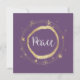 Sprid budskapet om fred under denna högtid. Vacker modern design med guldstjärna runt ordet Fred. Lila violett bakgrund. Lägg till ditt eget personliga meddelande. Perfekt kort att skicka till familj och vänner för att låta dem veta att du tänker på dem under högtiden.