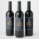 Elegant Modern Gold Merry Christmas Tree Design Vinflaska Etikett
