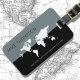 En underbarare design för att identifiera dina tillhörigheter. Världens karta i en halvsvart/halvröd bakgrund