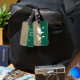 Underbar design för att identifiera dina tillhörigheter. Världens vita karta i en halv grönt/halv beige bakgrund. Ett bagagemärke med namn är viktigt av flera praktiska skäl vid resor. För det första är det ett snabbt och enkelt sätt att identifiera ditt bagage i havet från liknande påsar på flygplatser, i buss station eller på andra knutpunkter i transport. Detta kan spara dig att ta tid och minska risken för att av misstag ta någon annans väska eller få någon annan att ta din. För det andra ger en bagagetapp med ditt namn en viktig kontaktinformationslänk i fodral som din väska får borttappad. Om ditt bagage olyckligtvis blir missplacerat under resan, gör det mycket enklare för flygbolags eller transport personal att återförena dig med dina tillhörigheter om du har ditt namn och kontaktuppgifter på märkrn. Denna enkla åtgärd ökar chanserna till en snabb och korrekt hämtningsplan processaa. Förutom praktiska fördelar tillför ett bagage med namn-märkning också en lagrar av trygghet. Genom att tydligt visa ditt namn avskräcker du potentiella tjuvar eller personer med liknande tittar påsar från att försöka göra anspråk på eller öppna ditt bagage.