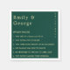 Lägg till en personlig beröring till ditt bröllopsmottagande med den här snyggten och moderna bröllop-servetter. Bakgrunden till den pulserande grönten anger bakgrunden till perfekten för elegant guld-typografi och roligt om bruden och trippen. Dina gäster kommer att lära kärlek om ditt favoritämne sak, hur du träffades och andra intressanta tidningar om ditt förhållande. Utformningen är enkel och anpassade, vilket gör att du kan välja perfekten färg för att matcha ditt bröllop-tema. Dessa blöjor kommer inte bara att ett praktiskt syfte, utan de kommer också att ge en unik och charmerande beröring till din mottagning. Gör din speciella dag ännu mer minnesvärd med roligten och anpassade bröllop-servetter.