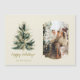 Den här helgdag i elegant har en enfotomall i en unik urklippsform, anpassade hälsning och modernt stil gräs Julgran med ljusande guld-bubblor i en buff-bakgrund.