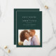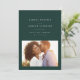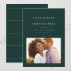 Med ett enda foto och en enda elegant men en enkel modern typografi är detta datum perfekten för att tillkännage din förlovning och kommande bröllop. Trendiget rik Jade grönt färg arbetar med alla stil i bröllop från formell till avslappnad. Baksidan har en enkel rand. Du kan ändra färg genom att klicka på "anpassa ytterligare".