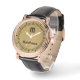 Elegant Modern Guld Black Monogram Initial Namn Watch har ett sofistikerat stil som är klassat som bära varje dag eller vid särskilda tillfällen. Titta på ditt första som ett modernt monogram. Och ditt namn på den speciella beröringen. Det är en slags modern gåva. Den kan bäras av en man eller kvinna. Det är en underbar studenten, födelsedag eller julklapp. Anpassa den med ditt första och namn.