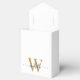 Tjejigt modernt elegant vitt och guld glitter monogram initialt namn signatur skript anpassad personlig presentlåda. Denna design med förnamn i en snygg handskriven svans typsnitts signatur typografi (eller kalligrafi) med monogram initial, ovanpå falskt guld färg glitter block på vit bakgrund. Dessa stilrena tjejiga kvinnliga presentlådor är bra för att dela ut presenter, gästpresenter och godsaker under en kommande födelsedagsfest, BBQ, baby shower, sweet 16 födelsedag, bröllopsreception, möhipparty, brud shower, årsdag och mer.