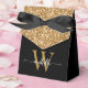 Tjejaktig modern elegant svart och guld glittermonogram initial namn signatur script anpassad personlig presentlåda. Denna design med ditt förnamn i en snygg handskriven stiliskt svansfont signatur typografi (eller kalligrafi) med monogram initial, ovanpå falskt guld färg glitterblock på svart bakgrund. Dessa stilrena tjejaktiga kvinnliga presentlådor är bra för att dela ut presenter, gästpresenter och godsaker under en kommande födelsedagsfest, BBQ, baby shower, sweet 16 födelsedag, bröllopsfest, möhippa, brud shower, årsdag och mer.