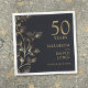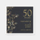 Dessa eleganta svarta och guldblommiga servetter för 50-års bröllopsdag kan anpassas med din information i modern guldtypografi. Designad av Thisisnotme©