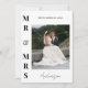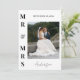 Fira din speciella dag med stil med detta klassiska och eleganta personliga tackkort för bröllopsfoto. Med en djärv ”Mr. & Mrs.”-design i kombination med ert nya efternamn i ett flytande kalligrafiskt typsnitt är detta moderna minimalistiska kort det perfekta sättet att dela din tacksamhet med familj och vänner. Baksidan har ett förtryckt tackmeddelande som du kan anpassa helt för att uttrycka din uppriktiga tacksamhet för era gästers kärlek, stöd och genomtänkta gåvor. Lägg till ert favoritbröllopsfoto för en personlig touch som kommer att skattas av alla som tar emot det. En tidlös souvenir som kombinerar sofistikation med sentimentalitet.