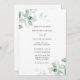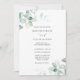 Elegant Modern bröllopsinbjudan med vattenfärgade eukalyptus löv. Anpassa med informationen för bröllopsdagen. Klicka på "klicka för att anpassa ytterligare" om du vill ändra teckensnittet stil, storlek eller färg.